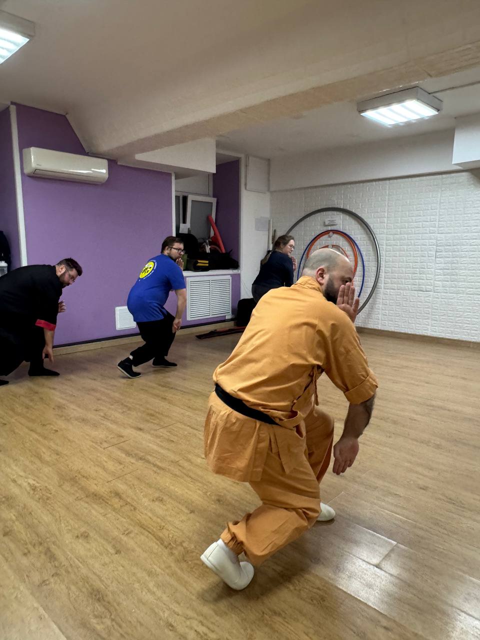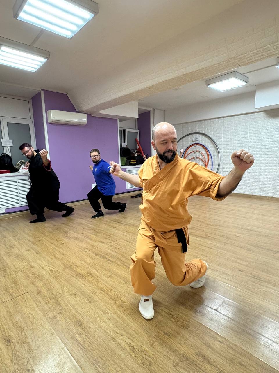 С начала мая по конец августа мы тренируется на улице. Это недалеко от нашего зала (5-7 минут пешком) в «Сквере Девичьего поля».